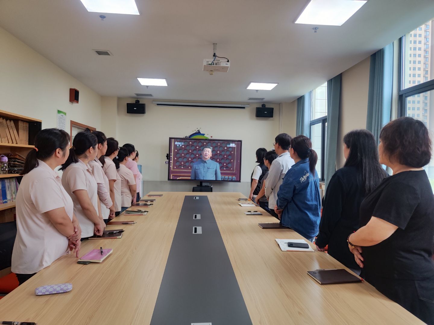 当日上午 9 时,两园师幼满怀激动观看阅兵直播。翠华幼儿园内,孩子们整齐端坐、紧盯屏幕,国歌声起时自发起立跟唱,受阅部队的整齐步伐、新型装备亮相与空中梯队呼啸而过的场景,引得孩子们阵阵惊叹,民族自豪感悄然萌发。朱雀幼儿园教职工齐聚多媒体会议室,见三军仪仗队铿锵迈步、国产新型装备登场,全体起立鼓掌,深刻体会到教育使命与国家命运的联结;小朋友们在教师组织下专注观看,礼炮轰鸣、军乐激昂的氛围,以及国旗护卫队与各兵种方阵的飒爽英姿,让他们直观感受到身为中国人的骄傲。