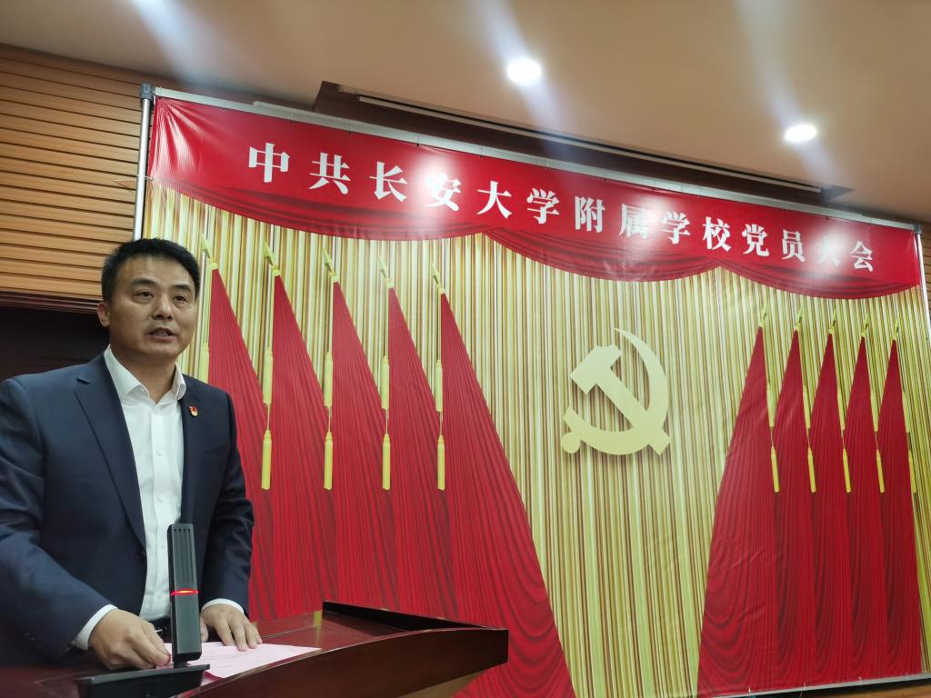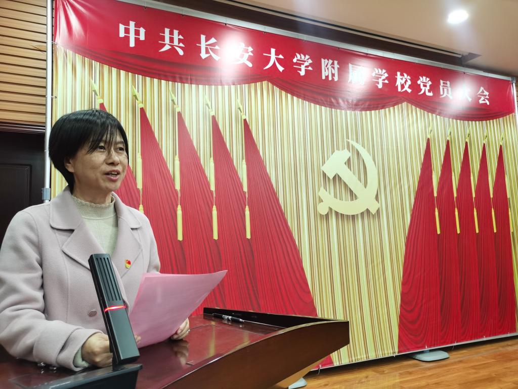 2025年11月26日下午,中共长安大学附属学校党员大会在阶梯教室隆重召开,附属学校党政领导及全体党员参加了会议,党办主任李国光、纪委秘书杨梦瑶出席并指导会议召开。会议由基础教育办公室主任、附属学校校长雷显锋主持。